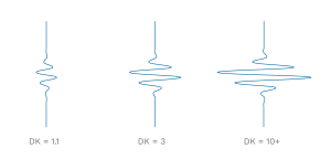 По мере увеличения значения DK мощность сигнала значительно возрастает — от слабых эхо-сигналов до четко определенных амплитуд
