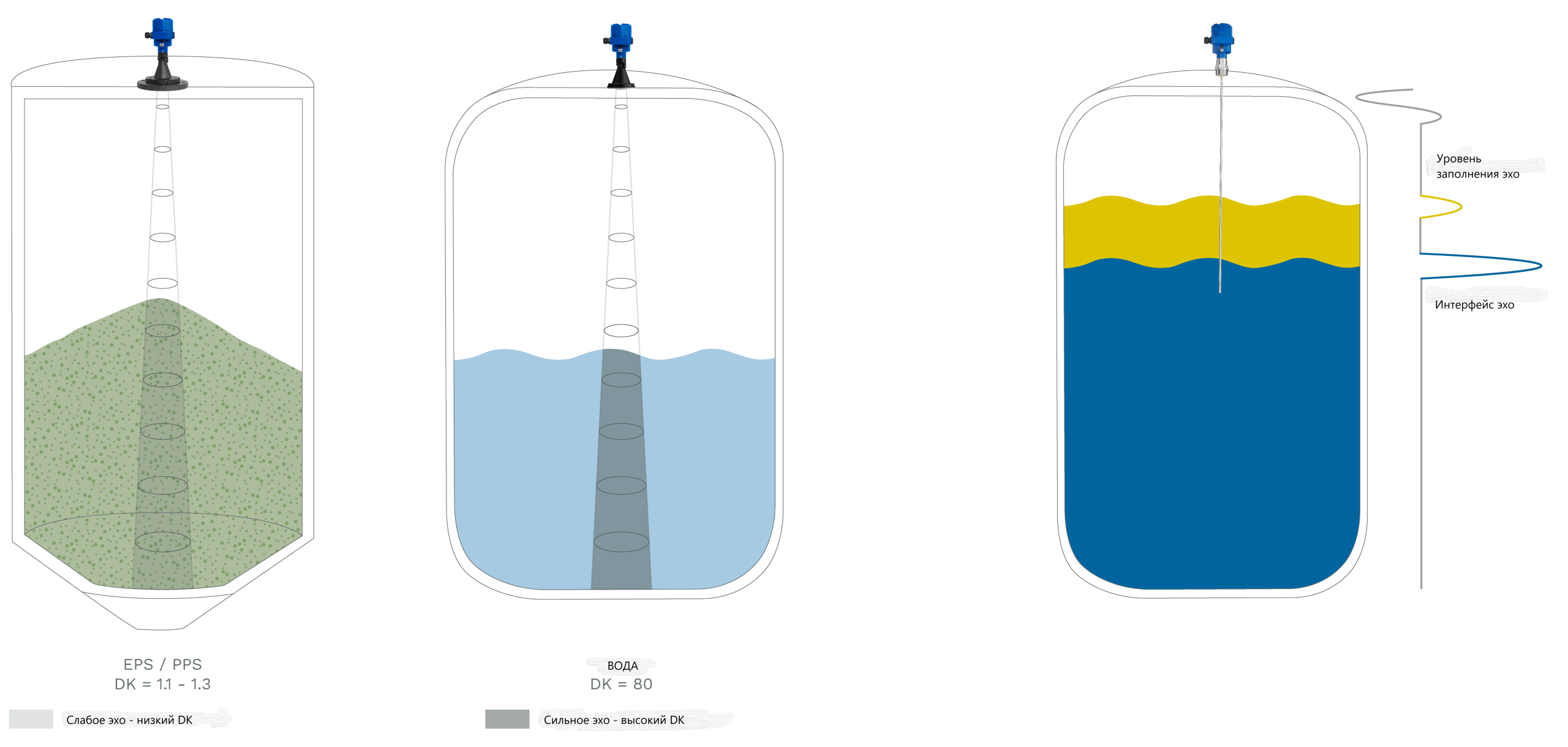 Значение DK определяет, насколько четко и последовательно создается измерительный сигнал — и, следовательно, насколько надежно можно измерить уровень.